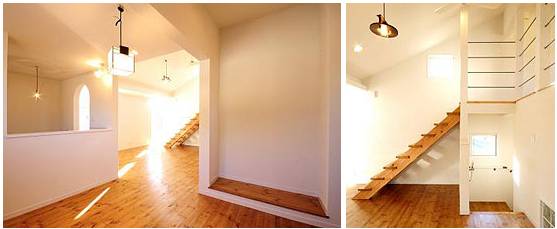 玄関から2階リビングへ この住宅は段差が特徴です。